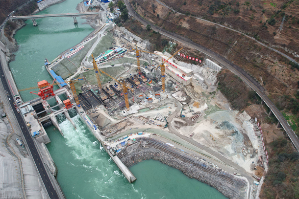 图为沙坪一级水电站建设现场