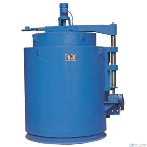 结构: 本炉由角钢、槽钢、钢板经焊接成圆柱形外壳,外壳内采用轻质粘土砖作耐火层,砌筑成竖井式炉膛,加热元件安置在炉膛内壁的搁砖上,在炉膛外圈,包一层硅酸铝耐火纤维作为隔热层,隔热层与外壳之间用保温粉、硅藻土匪砖填实作保温层,炉膛中间有一圆筒形装料筐,将加工的机件放入装料筐内进行加热,为了保证装料筐在吊入和取出时的安全,在加热元件和装料筐之间设有一层保护筐,炉顶有一通风机,作为在加热过程中搅拌炉膛内的空气,从而使炉膛内的温度尽量均匀,在开启炉盖之前,均须切断电源。