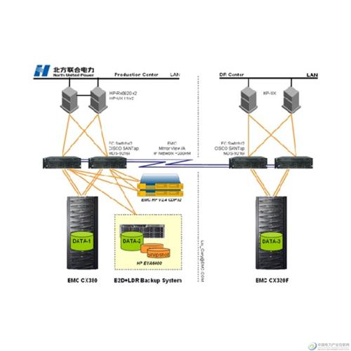 容灾中心设在200公里以外的达拉特电厂,主要设备包括1台EMC CLARiiON CX3-20和2台HP主机,为总部机房提供远程的应用级容灾保护。其核心技术采用EMC公司的远程异步镜像(MirrorView),结合Cisco 9016光纤交换机的特性,可以由CX3-80直接把生产数据同步到CX3-20上,不增加主机负担。